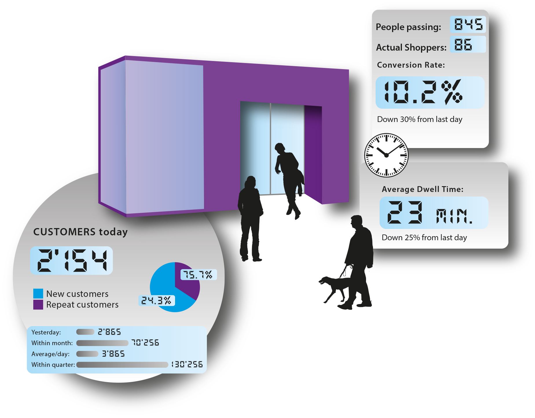 Was ist der 24/7 Verhältnis zwischen Passanten im Vergleich zu den potenziellen Kunden?
